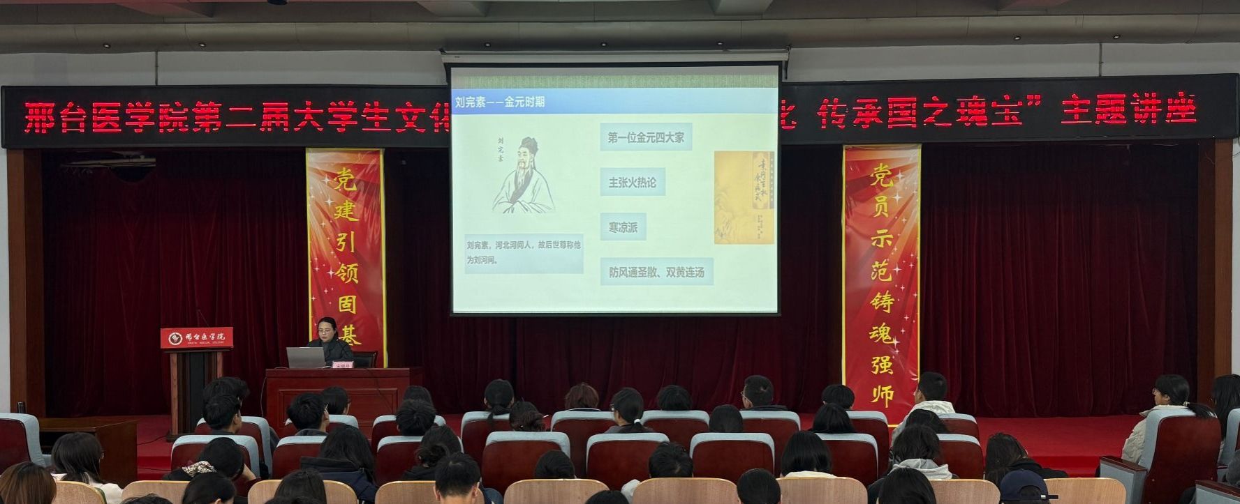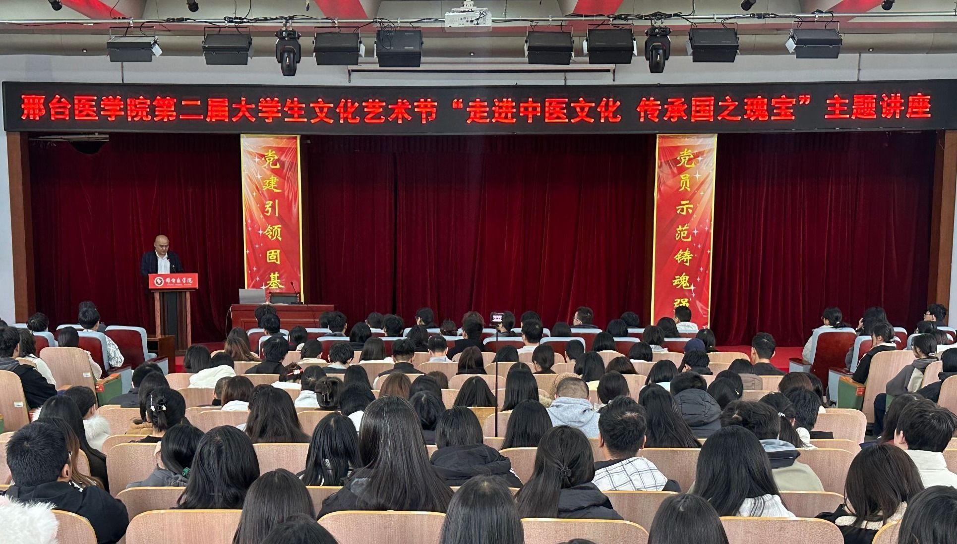 为弘扬中华优秀传统文化,增强全校学生对中医文化的认同与自信,10 月 21 日,由中医系团总支承办的第二届大学生文化艺术节之“走进中医文化 传承国之瑰宝”主题讲座在学术报告厅举行。本次活动由校团委指导,中医系教师宋晓丹博士担任主讲,全校 200 余名学生代表到场聆听。